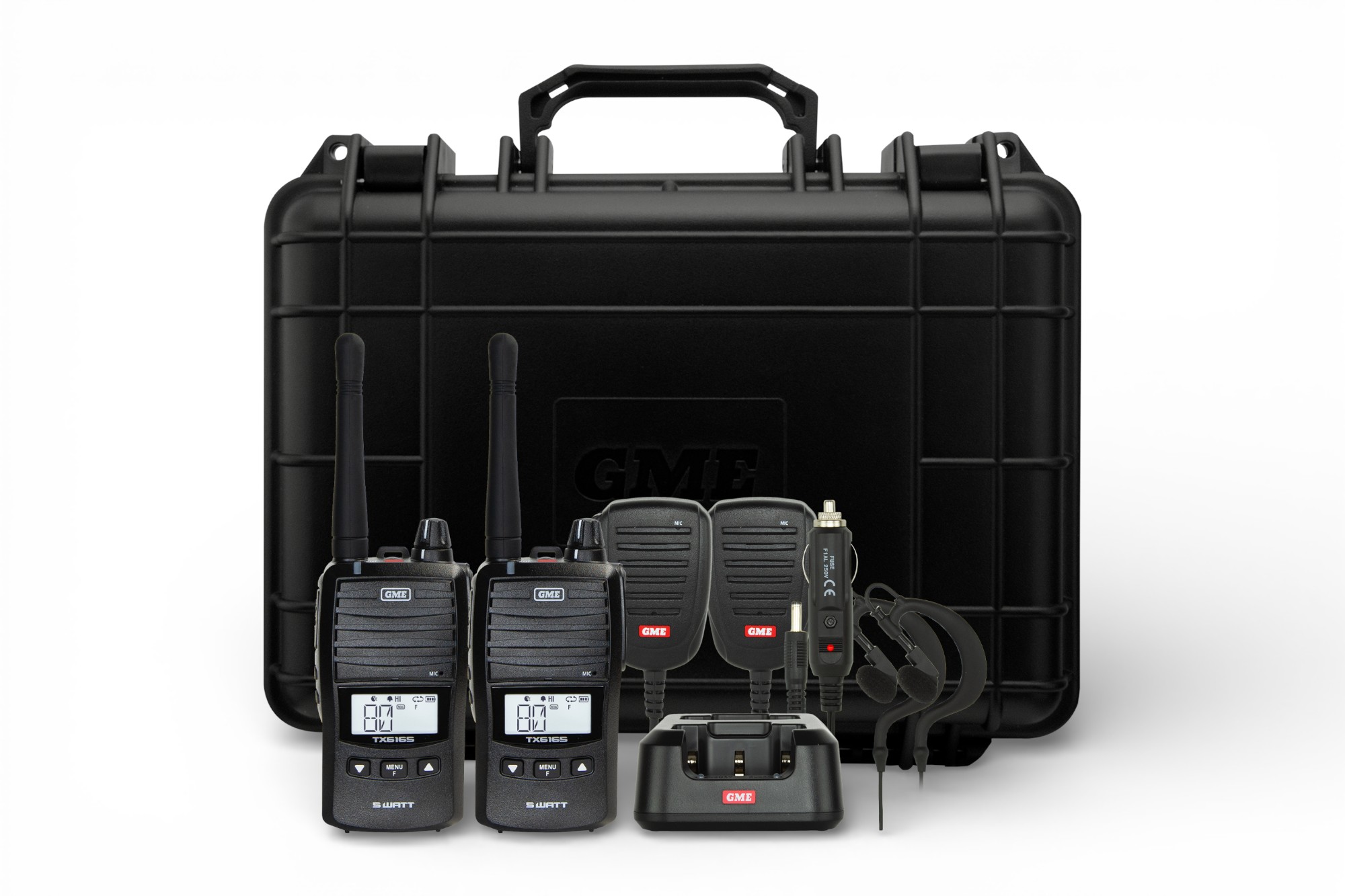 - 2 × GME TX6165 Handheld UHF CB Radios