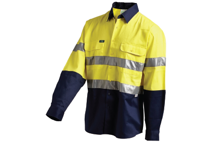 - Yellow/Navy Hi-Vis Lightweight Gusset Cuff Long Sleeve Drill Shirt With 3M Reflective Tape