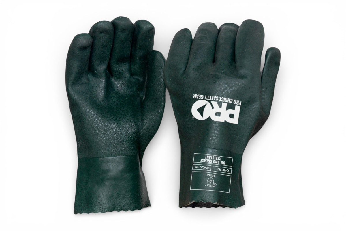 - Double-dipped with sand finish for improved grip and increased resistance to oil, and grease